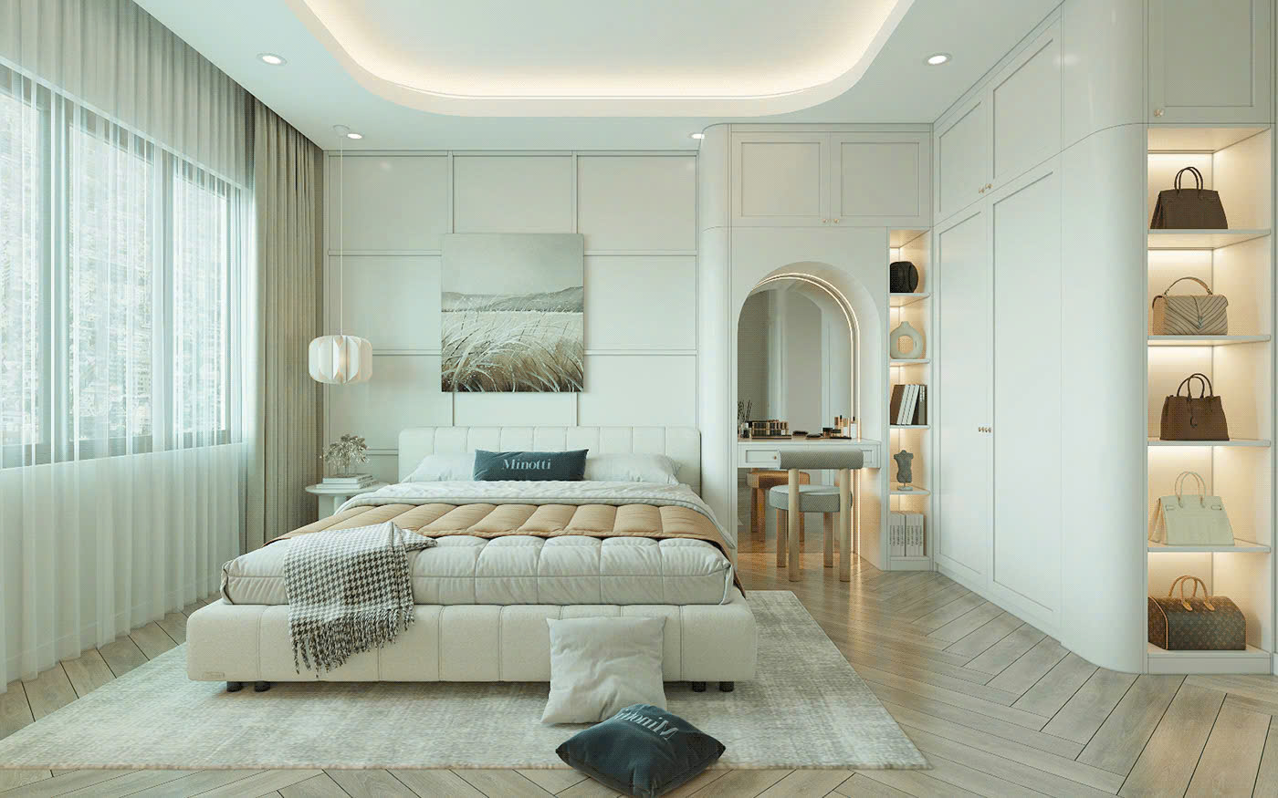 Thiết kế nội thất phòng ngủ 13m2 phong cách tân cổ điển