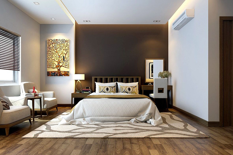 - Hệ thống điều hòa thông minh: Không lắp đặt điều hoà trên đầu giường, dễ gây đau đầu và ảnh hưởng đến thần kinh.