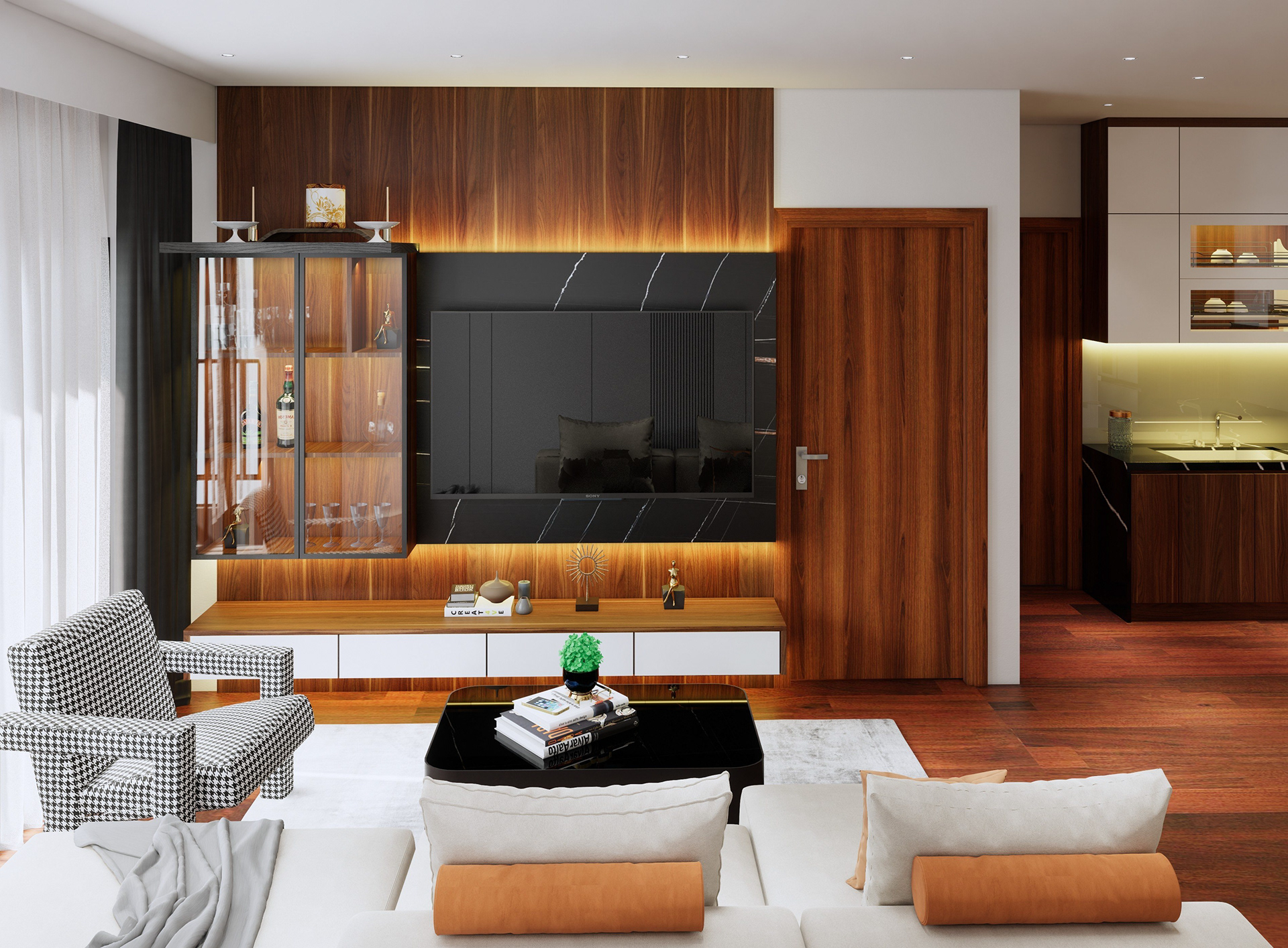 2. Thiết kế nội thất nhà phố gỗ óc chó