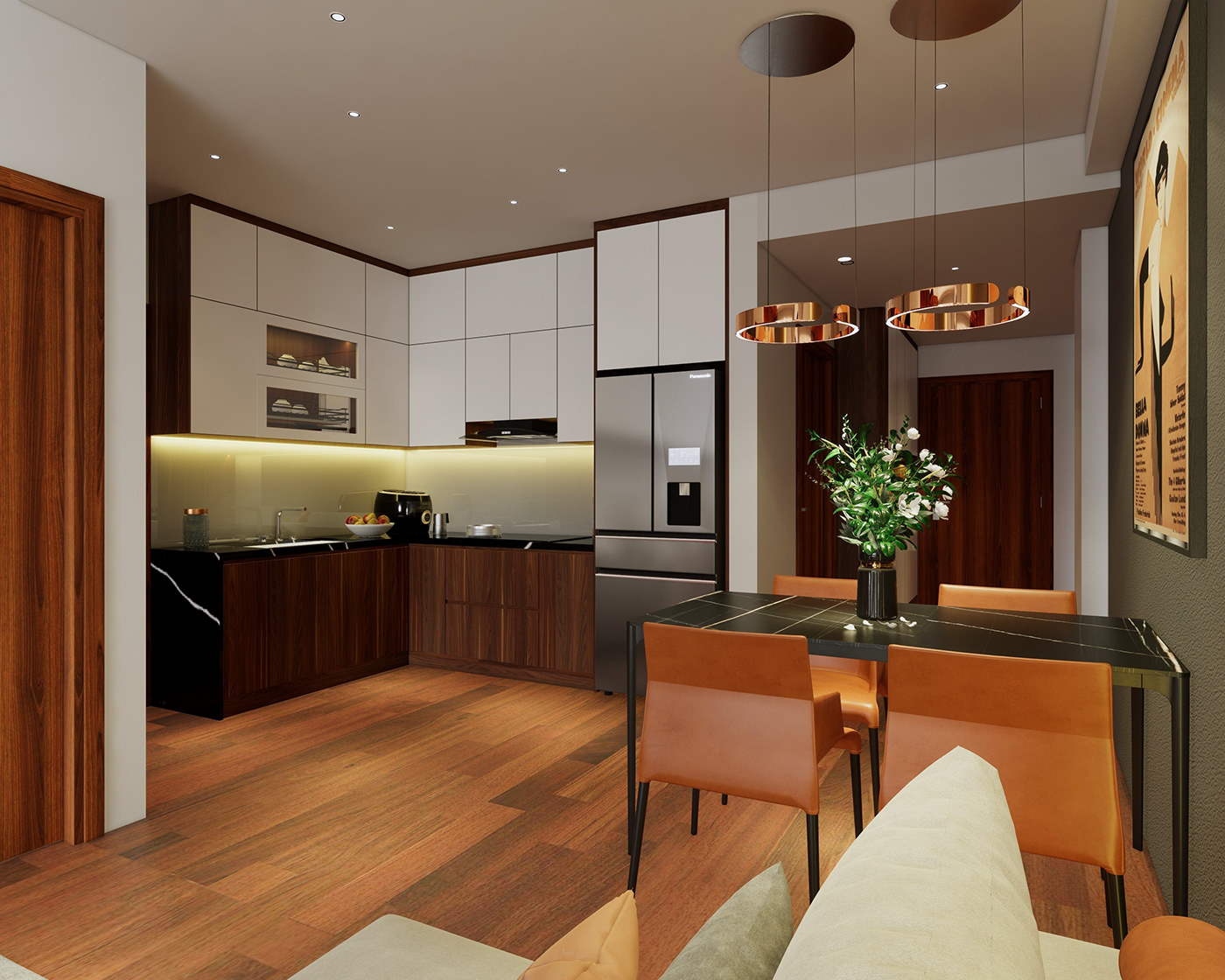 - Hạng mục: trọn gói nội thất phòng khách, bếp, 2 phòng ngủ, nhà vệ sinh, phòng giặt và phòng chờ