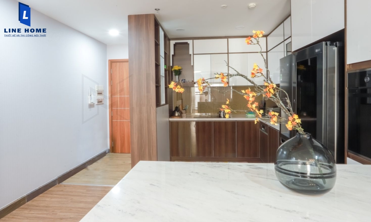 Nội thất phòng bếp được bố trí gọn gàng ngăn nắp và logic